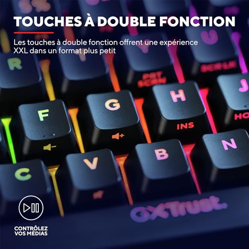 En outre, le rétro-éclairage RVB offre 16,8 millions de couleurs, permettant une personnalisation qui reflète votre style. Que vous préfériez un éclairage discret ou des effets lumineux dynamiques, ce clavier s’adapte à vos préférences. Les touches double fonction ajoutent une dimension supplémentaire, rendant chaque interaction intuitive et agréable.
