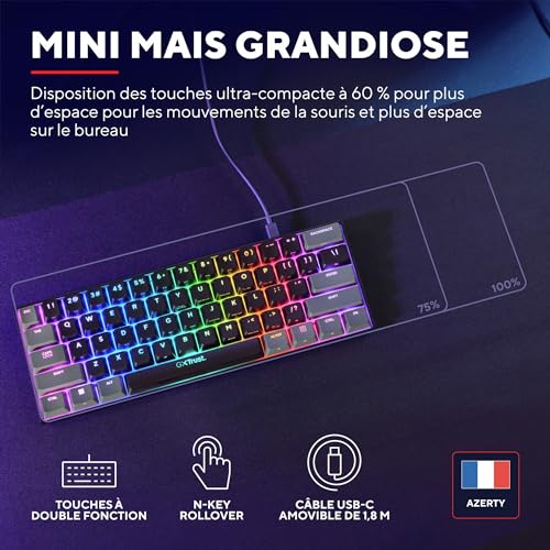 Le Trust GXT 154 Falx se démarque par son format ultra-compact de 60 %, rendant votre bureau à la fois fonctionnel et dégagé. Ce clavier, conçu pour les passionnés de gaming, offre toutes les fonctionnalités nécessaires dans un espace réduit. Les commutateurs rouges Outemu, réputés pour leur réactivité, garantissent une expérience de jeu fluide, testée jusqu’à 50 millions de frappes. Avec ce clavier, chaque partie devient une expérience immersive.